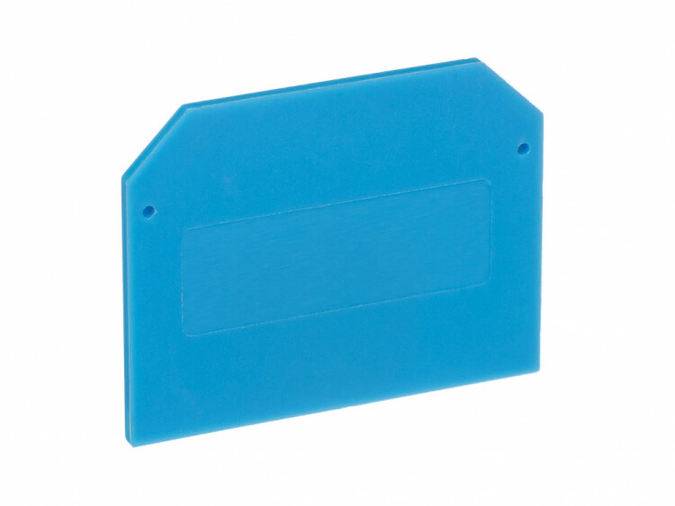 Заглушка для зажимов наборных серии ЗП-102 Dekraft; на номинальный ток 24 А; цвет – синий; материал – полиамид; количество в упаковке – 100 шт. Заглушки предназначены для установки между наборными зажимами для увеличения изоляционного расстояния и повышения безопасности распределительного щита.