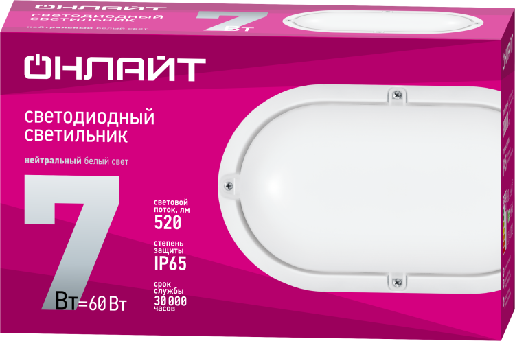 Светильник ОНЛАЙТ 71 687 OBL-O1-7-4K-WH-IP65-LED