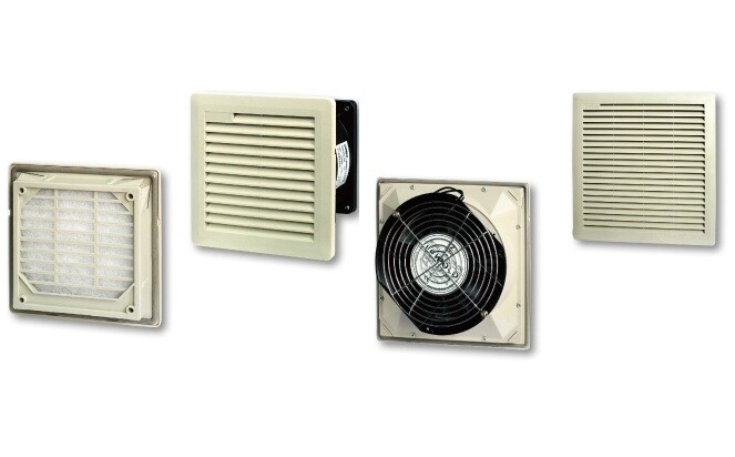 Применение:Шкафы, корпуса, боксы. Материалы:Решетки выполнены из не распространяющего горение AБСпластика.Фильтры изготовлены из синтетического моющегося материала, соответствующего классу G3 согласно ГОСТ Р 51251-99.В двигателях используются высококачественные подшипники качения, обладающие большим ресурсом работы (50000 часов).Преимущества:Использование высококачественных подшипников качения в кулерах с большим ресурсом работы (50000 часов).Легкость монтажа и простота обслуживания. Назначение:Для организации активного воздухообмена во внутреннем объеме шкафа. Позволяют существенно увеличить отвод тепла из корпуса, и, тем самым, способствуют улучшению стабильности работы и увеличению ресурса оборудования. Конструкция:Конструктивно устройство представляет собой осевой вентилятор с установленной на него решеткой со сменным фильтром.