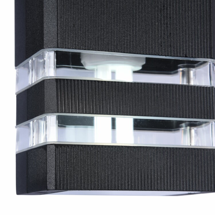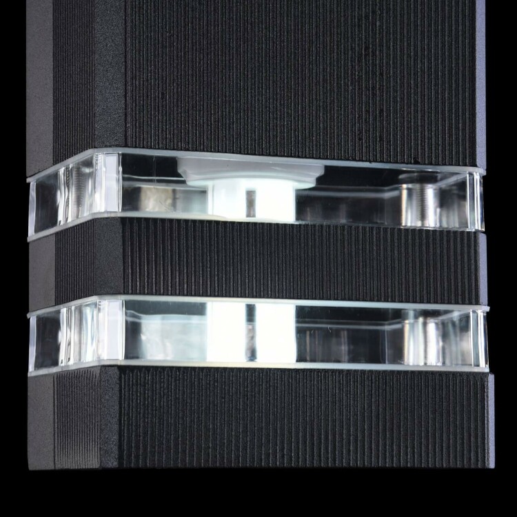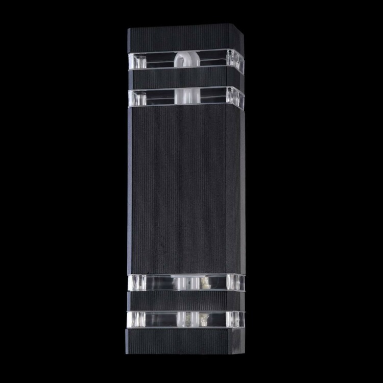 Отличительной чертой садово-парковых светильников серии Unter den Linden является рифленая поверхность корпуса и небольшие, по отношению к остальной конструкции, прозрачные рассеиватели из пластика. Светильники, сделанные из алюминия и укомплектованные силиконовыми прокладками, обладают высокой степенью IP54 и не подвержены коррозии и температурным перепадам. Бра O578WL-02B; Цвет-Черный; Высота-330; Высота при подвесном креплении--; Диаметр--; Ширина-110; Глубина-100; Цоколь-E27; Мощность-60W
