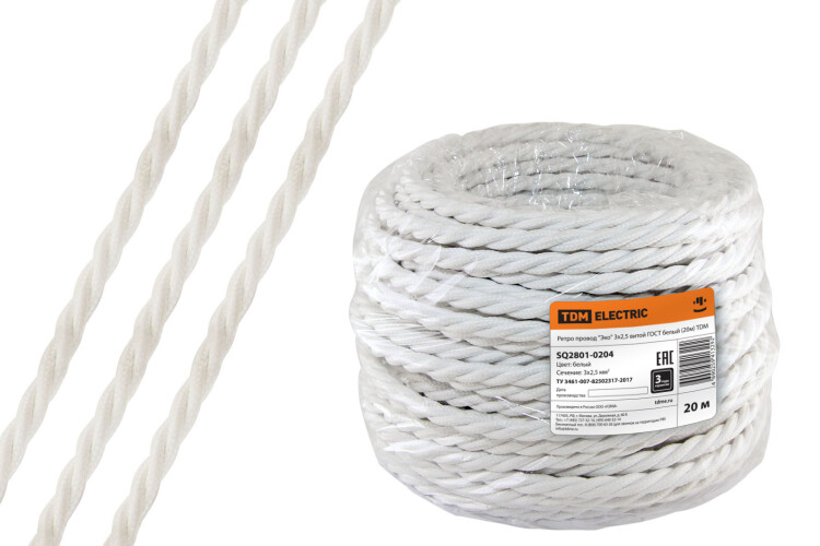 РЕТРО/ЭКО Провод витой 3х2,5 ПВО белый TDM (20м)
