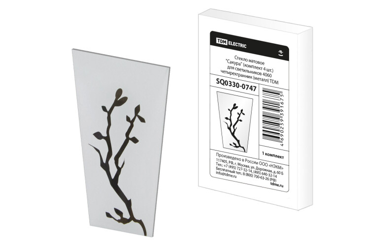 Стекло матовое "Сакура" (комплект 4 шт.) для светильников 4060 четырехгранник металл TDM