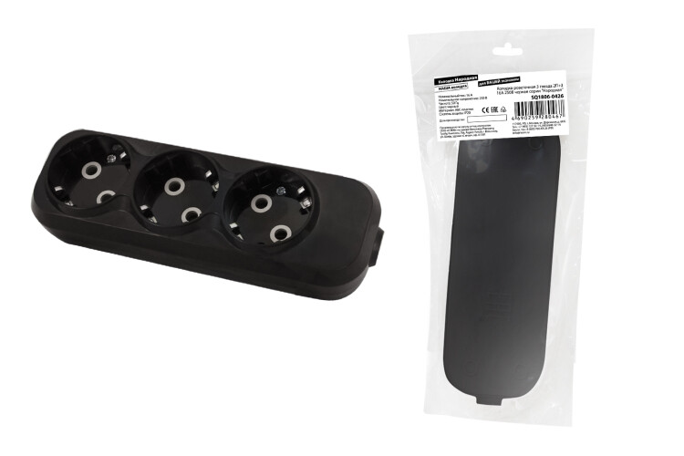 НАРОДНАЯ Колодка 3 гнезда с/з 16А 250В черная TDM (10/100шт)
