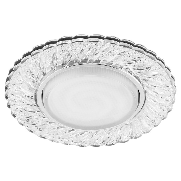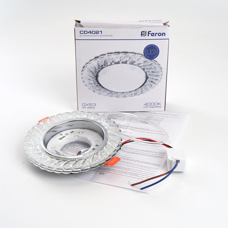 Светильник потолочный встраиваемый (ФВО) FERON CD4021, под лампу с LED подсветкой 20LED*2835 SMD 4000K, GX53 GX53, прозрачный хром, круг, 133*133*30 мм, монтажный диаметр 80мм, корпус полимер, неповоротный