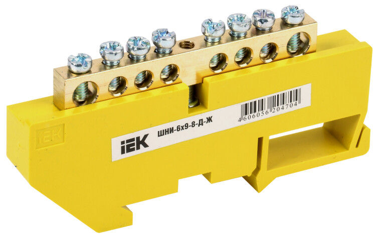 Шина PE "земля" на DIN-изоляторе ШНИ-6х9-8-Д-Ж IEK