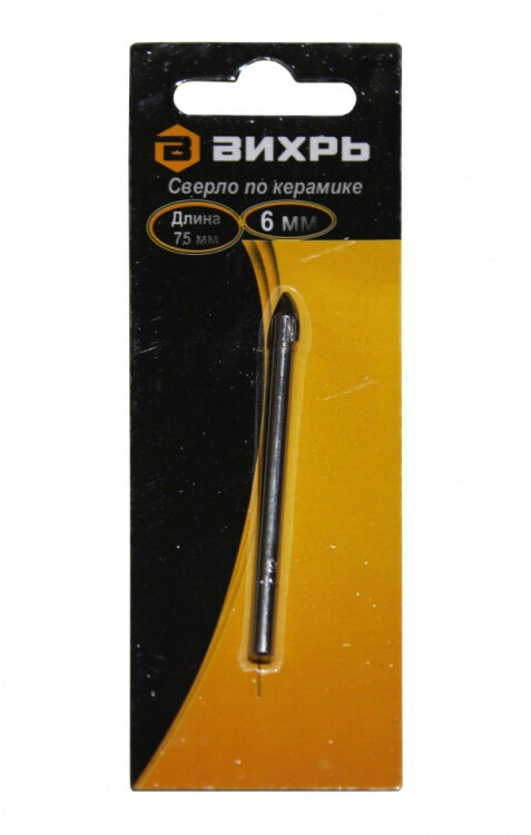 Сверло по керамике и стеклу 6 мм, 1 шт. в блистере Вихрь 73/10/6/13
