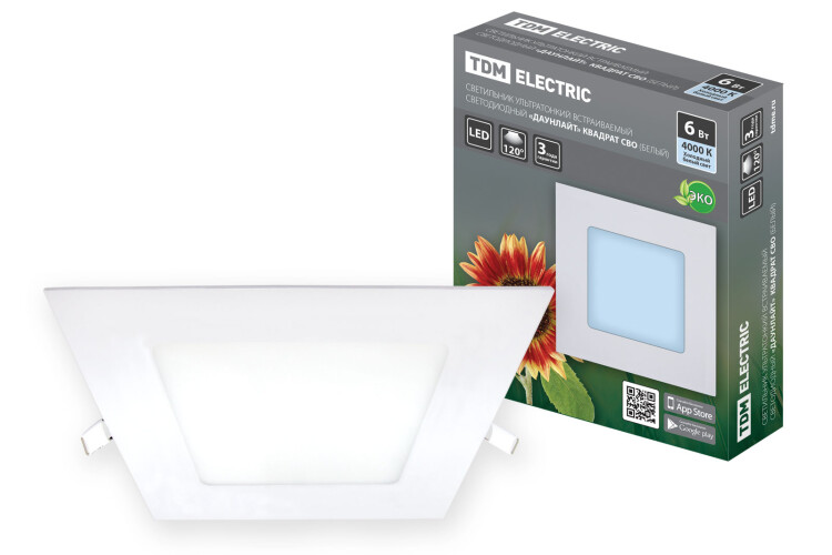Светильник ультратонкий встраиваемый светодиодный "Даунлайт" квадрат СВО (белый) 6 Вт 4000К TDM
