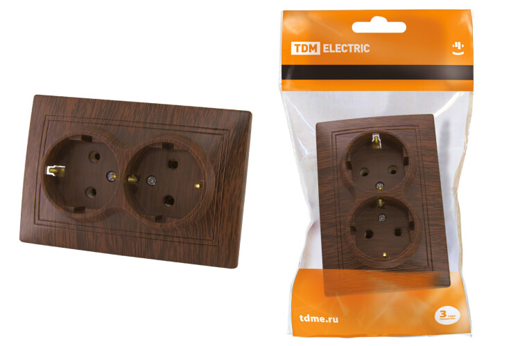 ТАЙМЫР Розетка 2-ая с/з 16А бук TDM (10/200шт)