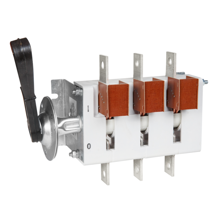Выключатель-разъединитель 3 полюсный на номинальный ток 400 А, в котором установлена съемная рукоятка.