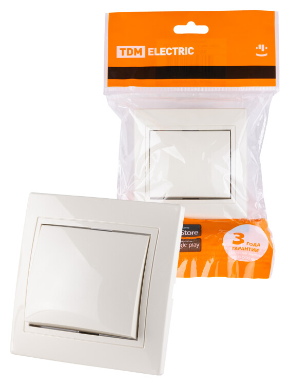 ТАЙМЫР Выключатель 1-кл. 10А слоновая кость TDM (10/100шт)