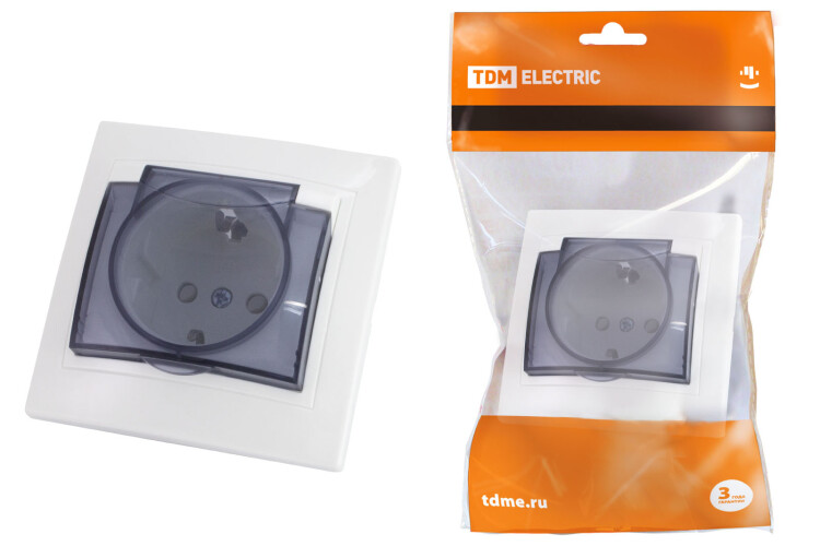 ТАЙМЫР Розетка 1-ая с/з с з/ш с крышкой 16А белый TDM (10/100шт)
