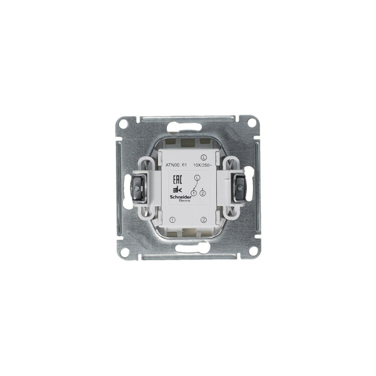 Механизм Systeme Electric (ранее Schneider Electric) серии AtlasDesign в цвете алюминий переключателя 1-клавишного подходит для сетей 250 В, на ток 10 А.