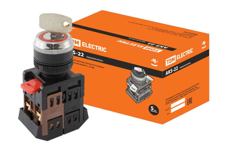 Переключатель АKS-22 черный с ключом на 2 фиксир.положения I-O 1з+1р TDM