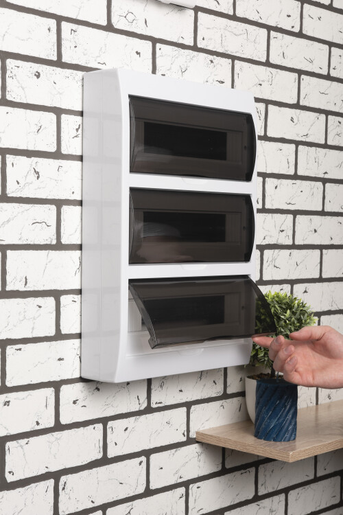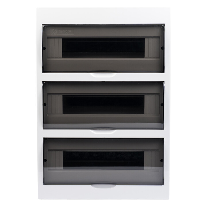 Щиты распределительные пластиковые ЩРн-П, ЩРв-П EKF PROxima предназначены для установки модульной аппаратуры: автоматических выключателей, УЗО, таймеров, устройств управления и т.д. Используются для электромонтажа в жилых, административных, торговых помещениях. Вертикальное открывание дверцы позволяет устанавливать бокс независимо от положения соседних стен. Электрощиты изготовлены из прочного ABS-пластика.