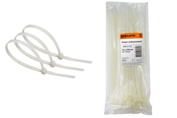 Хомут 7,6х350мм нейлон (белый) (100шт) TDM