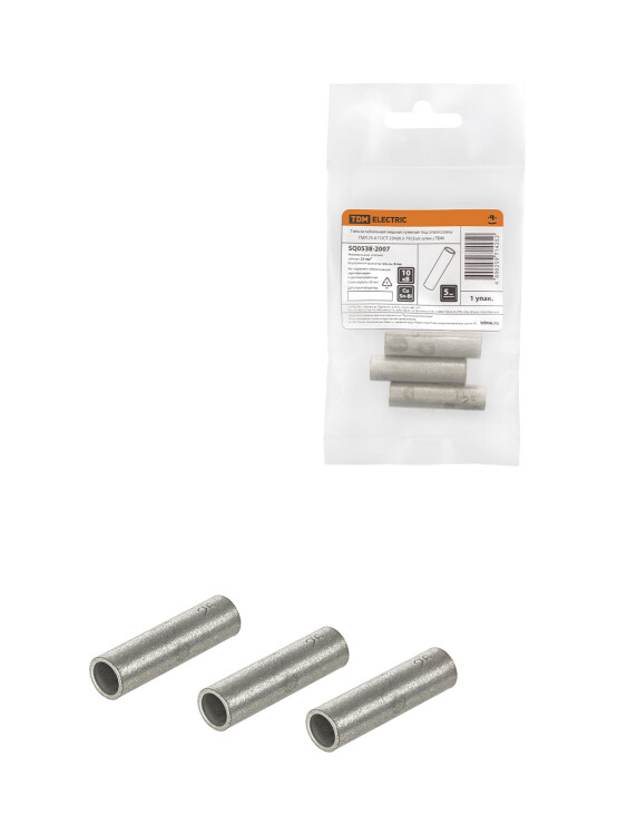Гильза кабельная медная луженая под опрессовку ГМЛ 25-8 ГОСТ 23469.3-79 (3шт./упак.) TDM