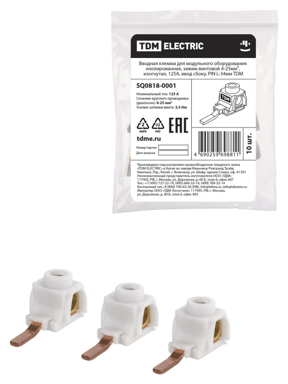 Вводная клемма для модульного оборудования изолированная с винтовым зажимом 4-25мм TDM