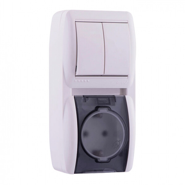 NATA Выключатель 2-кл. и розетка 1-ая вертикальная с/з с крышкой белая LEZARD (10шт/120шт)