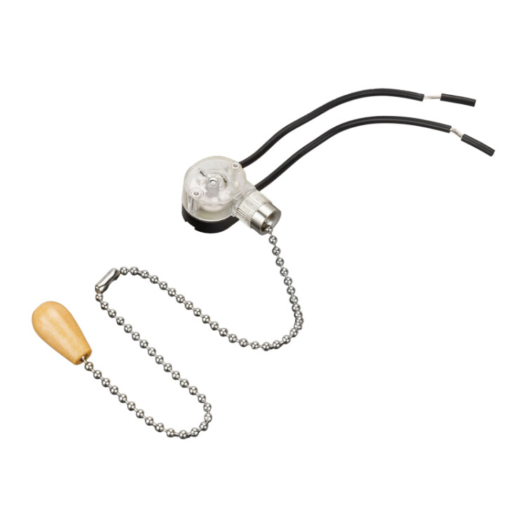 Выключатель для настенного светильника предназначен для замены вышедшего из строя выключателя на осветительном приборе. Используется для удобного управления освещением. Хромированная цепочка устойчива к коррозии и соxраняет эстетичный вид долгое время, а длина 27 см обеспечивает удобный доступ к светильникам, которые расположены высоко. Деревянный наконечник позволяет быстрее найти выключатель, что особенно упрощает его использование в темноте.К выключателю уже присоединены провода, что упрощает процесс установки.Предназначен для использования только в жилыx помещенияx.