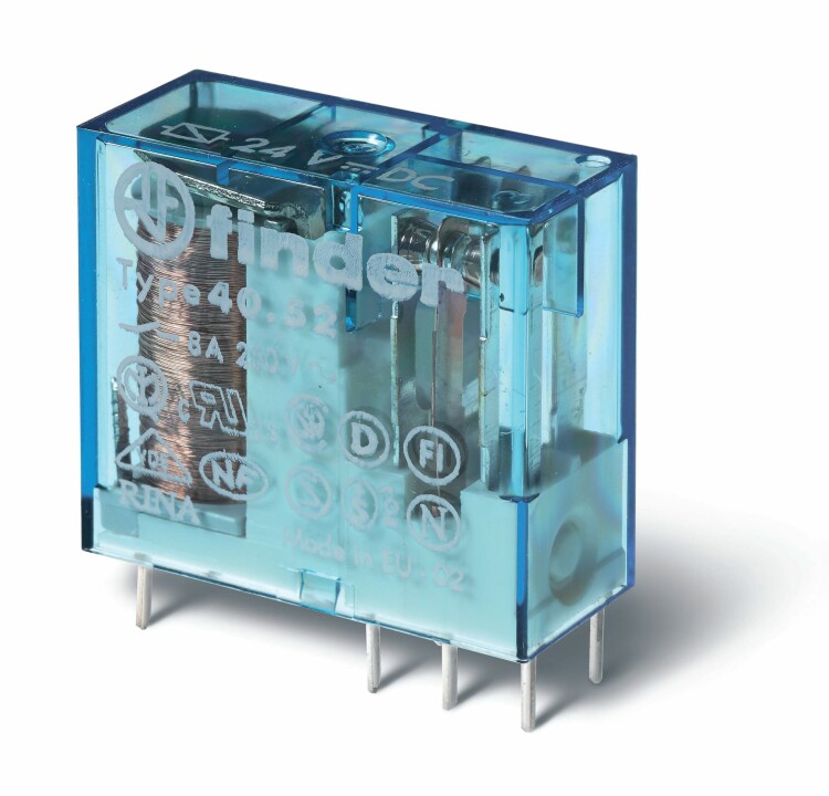 Finder Миниатюрные PCB-реле, выводы с шагом 5мм, Контакты AgNi, 2CO 8A, Чувствительная катушка DC