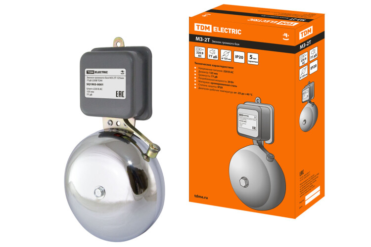 Звонок громкого боя 77дБ 220В МЗ-2Т-125мм TDM (1/20шт)