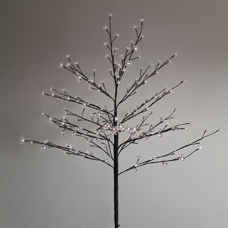 Комнатное дерево "Сакура" высотой 1,2 метра станет прекрасным украшением интерьера, которое принесет уют в ваш дом и заставит подолгу любоваться эффектным свечением 80 диодов. Декор выполнен в виде дерева с коричневыми стволом и ветками. Прозрачные пластиковые цветы излучают постоянный белый свет нейтрального оттенка. Шнур длиной 10 метров в изоляционной оболочке из черного ПВХ заканчивается сетевым трансформатором, понижающим напряжение. Основанием служит металлическая крестовина.