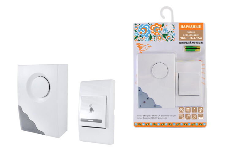 НАРОДНАЯ Звонок беспроводной на батарейках 32 мелодии ЗББ-Н-11/4-32М TDM (1/60шт)