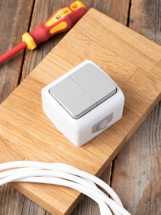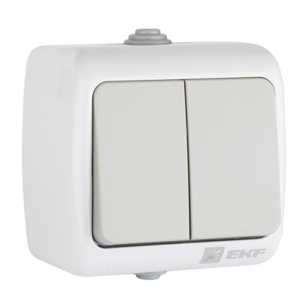 Выключатель двухклавишный EKF серии Мурманск позволяет организовать электроснабжение в условиях высокой влажности и пыльных помещениях, на улице при условии установки под навесом. Ступенчатые герметичные вводы с двух сторон изделия обеспечивают надежную защиту, позволяя использовать устройство в агрессивных условиях.
