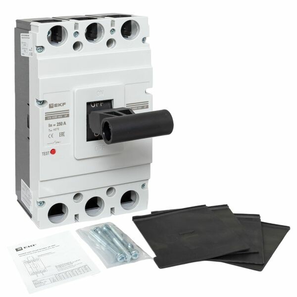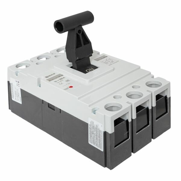 Выключатель ВА-99М выполнен в виде моноблока и состоит из основания и крышки с фальшпанелью, в которой имеется окно для рукоятки управления и толкатель кнопки «Тест» - проверки механизма отключения выключателя. Основание выполнено из термостойкой пластмассы, не поддерживающей горение и являющейся несущей конструкцией для присоединительных зажимов, неподвижных и подвижных контактов с системой дугогашения, механизма управления, блока защиты от сверхтоков. Крышка закрывает все подвижные элементы механизма управления и внутренние токоведущие части.