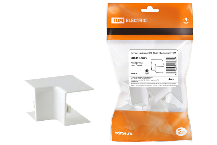 "TDM" КМВ Угол внутр. для кабель-канала белый 40x25мм 4шт/уп
