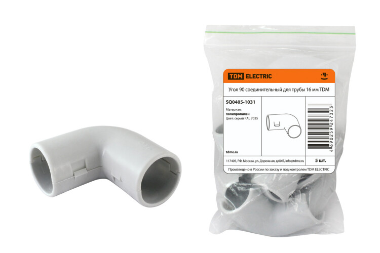 "TDM" Угол для пласт. трубы серый IP40 d16мм 5шт/уп