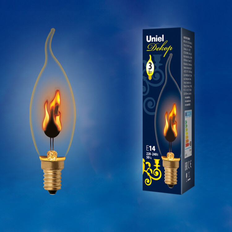 IL-N-CW35-3/RED-FLAME/E14/CL Лампа декоративная с типом свечения "эффект пламени". Форма «свеча на ветру», прозрачная. Картон. ТМ Uniel.