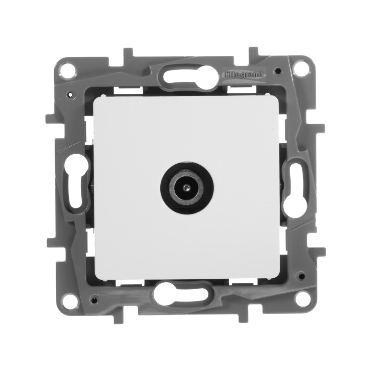 Оконечная ТВ-розетка Legrand Etika, цвет белый, является составляющей частью схемы последовательного подключения "шлейф" (от одного к другому) ТВ-приёмников. Устанавливается в конце линии, применяется совместно с проходными ТВ-розетками. Не применяется в качестве одиночной розетки для одного телевизора. Особенности: - Механизм изготовлен из металлического сплава и защищает соединение от электромагнитных помех. - Присоединение коаксиального кабеля к розетке осуществляется удобным безвинтовым коннектором. - Подходит для цифрового ТВ-вещания. - Механизм крепится на суппорте из поликарбоната, специальный профиль которого обеспечивает простоту и безошибочность многопостового монтажа. - Поставляется с лицевой панелью.Лицевая панель крепится на защелках. Изготовлена из глянцевого АБС пластика, стойкого к выгоранию и загрязнениям. - Комплектуется инструкцией Особенности серии Etika: - Острые крепёжные лапки с широким углом раскрытия, обеспечивают надёжную фиксацию в монтажной коробке