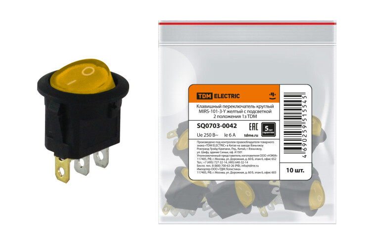 Клавишный переключатель круглый MIRS-101-3-Y желтый с подсветкой 2 положения 1з TDM