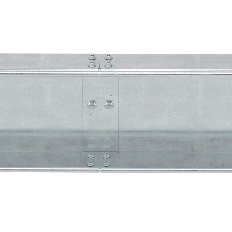 В случае, если лоток был отрезан неровно и при соединении возникает стык, он может быть закрыт соединительной пластиной CGB, которая крепится винтами. Накладка также применяется для дополнительного укрепления мест стыков. Накладка применяется с лотками шириной 200 мм. Аксессуары в исполнении "Цинк-ламель" имеют специальное покрытие на основе химически активной магниевой смолы, в которую добавлены хлопья алюминия и цинка. Такое покрытие обеспечивает электрохимическую и барьерную защиту от коррозии. Показатели коррозионной стойкости цинк-ламельного покрытия ДКС аналогичны показателям горячеоцинкованного покрытия.