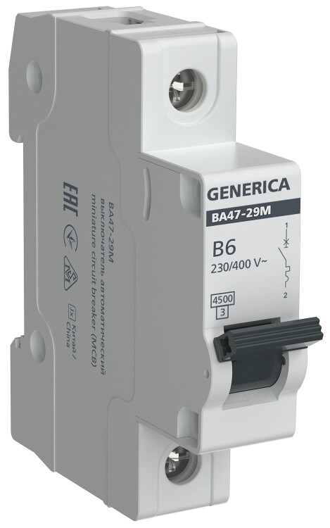 Автоматические выключатели ВА47-29M GENERICA предназначены для защиты распределительных и групповых цепей, имеющих различную нагрузку: