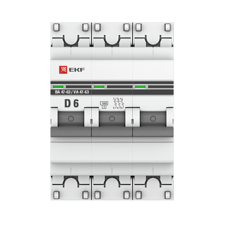 Автоматические выключатели ВА 47-63 4,5 кА EKF PROxima являются механическими коммутационными аппаратами и соответствуют ГОСТ Р50345-2010. Особенностью данной серии выключателей является усовершенствованная конструкция. В выключателях имеются пластиковые крышки, закрывающие доступ к винтовому зажиму и служащие для опломбирования выключателей, что исключает несанкционированный доступ к проводникам. Корпус выключателей усилен дополнительными заклепками для устранения эффекта расхождения корпуса. Выключатели оборудованы удобной ручкой управления, обеспечивающей надежное оперирование изделиями. На лицевой панели выключателей имеется цветовой индикатор состояния. Конструкция установочного зажима обеспечивает свободную установку выключателя на DIN-рейку.