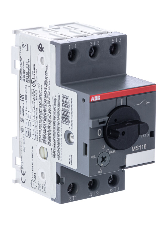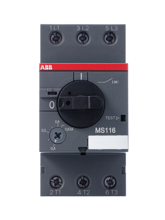 ABB Выключатель автоматический MS116-0.63 50 кА с регулир. тепловой защитой 0,40A-0,63А Класс тепл. расцепит. 10