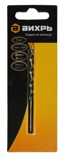 Сверло по металлу 5 мм, P6M5 (1 шт. в блистере), Вихрь