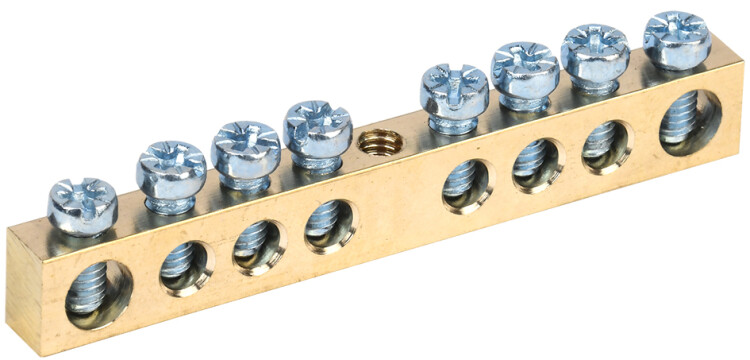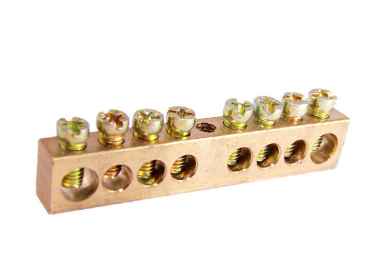Применяются в щитовом оборудовании для подсоединения нулевых рабочих (N) и нулевых защитных проводов (РЕ). Крепление шины предусмотрено по центру (типы 8/1; 14/1) и по краям (типы 8/2 и 14/2) через изолятор нулевой шины на 35 мм монтажную DIN-рейку и через угловые изоляторы нулевой шины, а также непосредственно на панель щита. При подключении к шинам медных многожильных проводов рекомендуется оконцевание их наконечниками-гильзами. Выполнены из латуни.