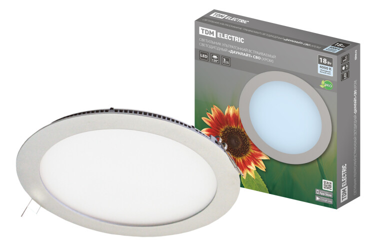 Светильник ультратонкий встраиваемый светодиодный "Даунлайт" СВО (хром) 18Вт 4000К TDM