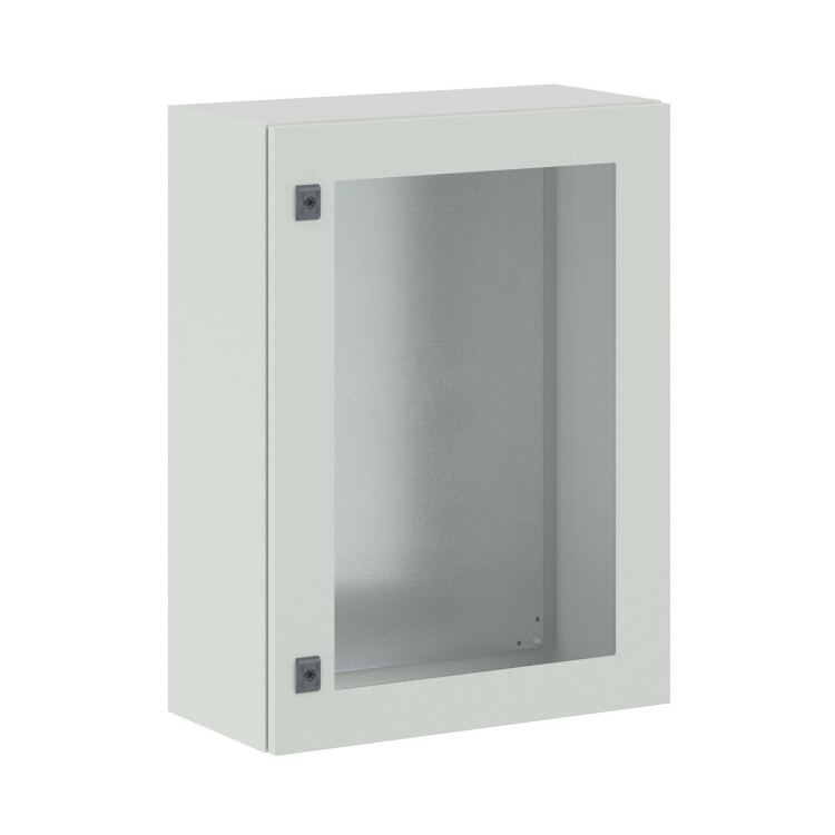 В комплект поставки корпусов входят: фланец, монтажные аксессуары, монтажная плата. По умолчанию шкафы укомплектованы стандартным замком с личинкой под ключ с двойной бородкой, однако замок при необходимости может быть заменен. Сборные металлические шкафы CE соответствуют российским стандартам, они могут устанавливаться в сейсмоопасных зонах и имеют необходимые сертификаты. Корпуса с прозрачной дверью чаще всего используются в системах мониторинга, защиты и автоматизации. Уровень ударопрочности корпусов - IK 10. Закаленное стекло устойчиво к повреждениям.