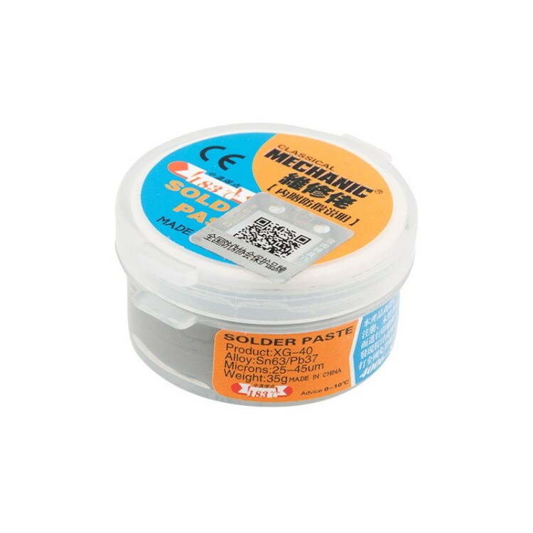 Припой паста (паяльная паста) это техническая (вязкая, густая) смесь порошкообразного припоя и флюса-связки, а также других вспомогательных веществ, которые делают свойства пасты более активными и интенсивными.br/Паяльные пасты широко используются в электронной промышленности в технологии поверхностного монтажа SMD компонентов. Служит материалом, обеспечивающим образование паяльных соединений.br/br/Способ применения: br/Нанести на место пайки. br/Произвести пайку. br/При необходимости удалить остатки.br/br/Основные достоинства:br/Многофункциональность применения помимо основного назначения в качестве припоя, паста одновременно является флюсом.br/Возможность применения пасты для изготовления плат с очень мелкими деталями.br/Механизация паяльных работ.br/br/Технические характеристики:br/Температура пайки: 180...350 Cbr/Содержание олова: min. 90 %br/Тип флюса: канифольный активныйbr/Отмывка: горячая водаbr/Масса: 35 г