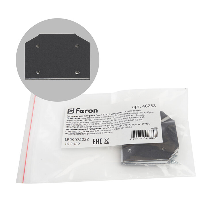Заглушка для профиля Feron S26 (2 заглушки + 8 саморезов)