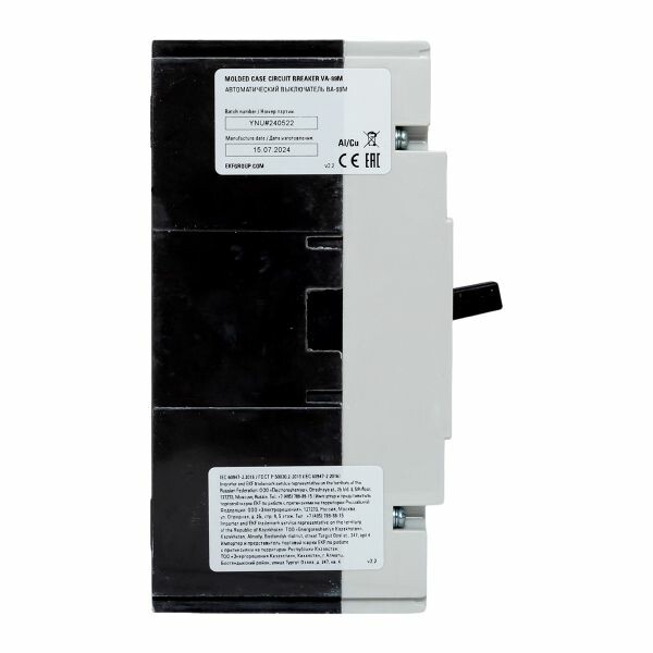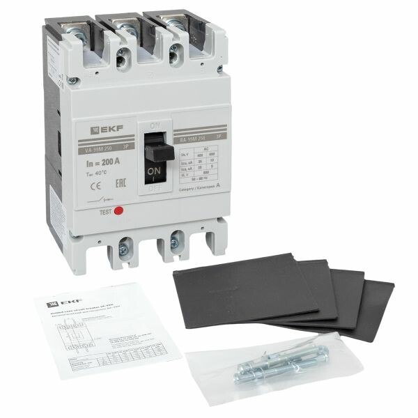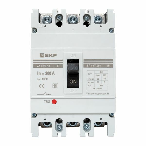 Выключатель ВА-99М выполнен в виде моноблока и состоит из основания и крышки с фальшпанелью, в которой имеется окно для рукоятки управления и толкатель кнопки «Тест» - проверки механизма отключения выключателя. Основание выполнено из термостойкой пластмассы, не поддерживающей горение и являющейся несущей конструкцией для присоединительных зажимов, неподвижных и подвижных контактов с системой дугогашения, механизма управления, блока защиты от сверхтоков. Крышка закрывает все подвижные элементы механизма управления и внутренние токоведущие части.