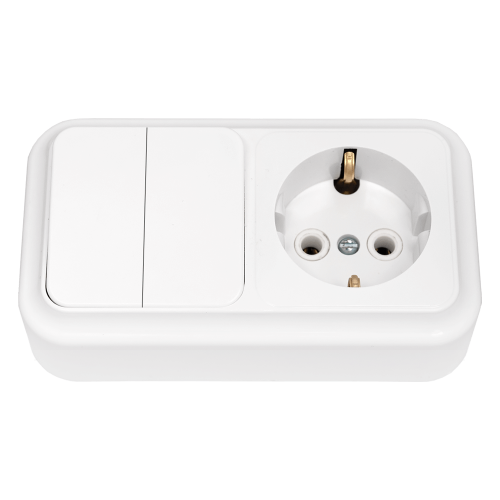 ПРАЛЕСКА Блок выключатель 2-кл.+розетка с/з горизонтальный белый БелТИЗ