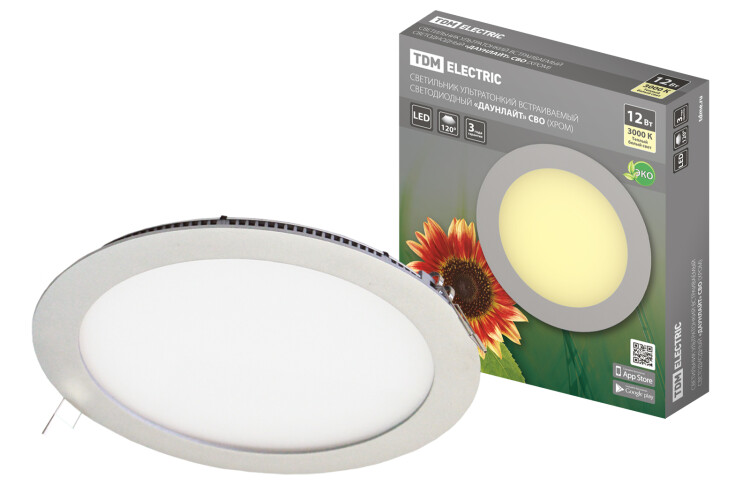 Светильник ультратонкий встраиваемый светодиодный "Даунлайт" СВО (хром) 12Вт 3000К TDM