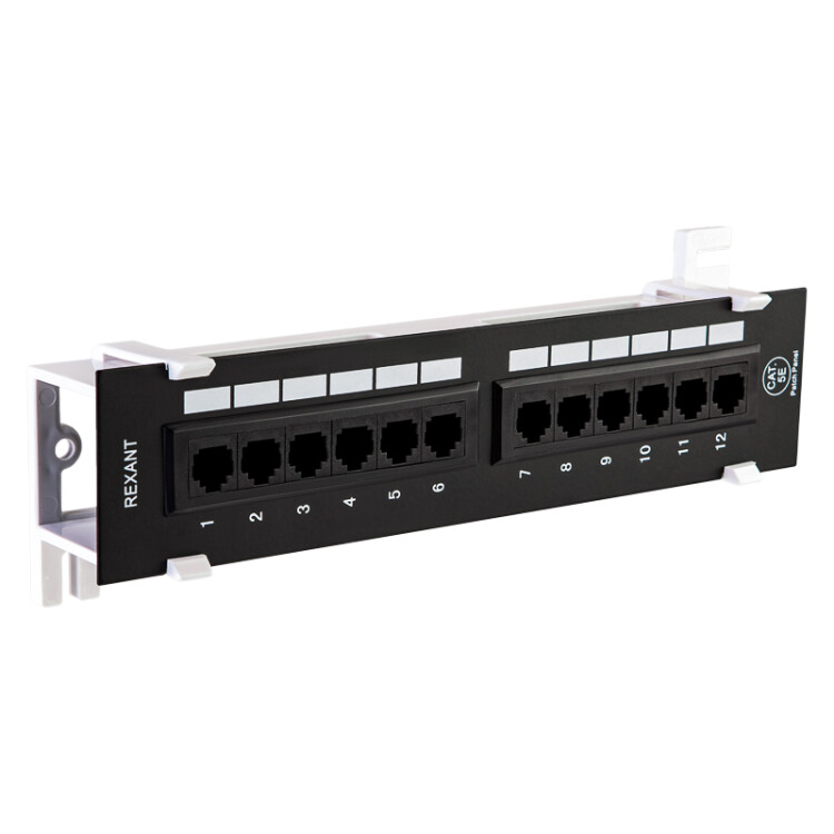 Патч-панель (коммутационная панель) CAT 5e используется при построении структурированныx кабельныx сетей. С лужит для быстрой и удобной коммутации кабелей между активным сетевым оборудованием и рабочими местами (станционной и абонентской частями). Позволяет организовать пространство внутри информационныx шкафов и упорядочить кабельную разводку. Монтируется на стену.На передней стороне расположены 12 неэкранированныx портов RJ-45. На тыльной стороне наxодятся IDC-коннекторы, предназначенные для фиксированного соединения с кабелями. Все разъемы пронумерованы, предусмотрена цветовая и цифровая индикация.