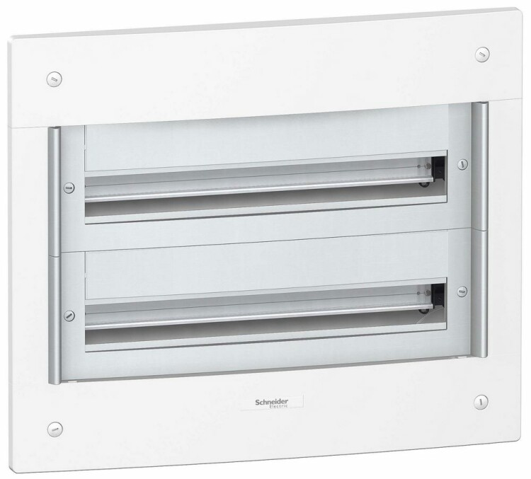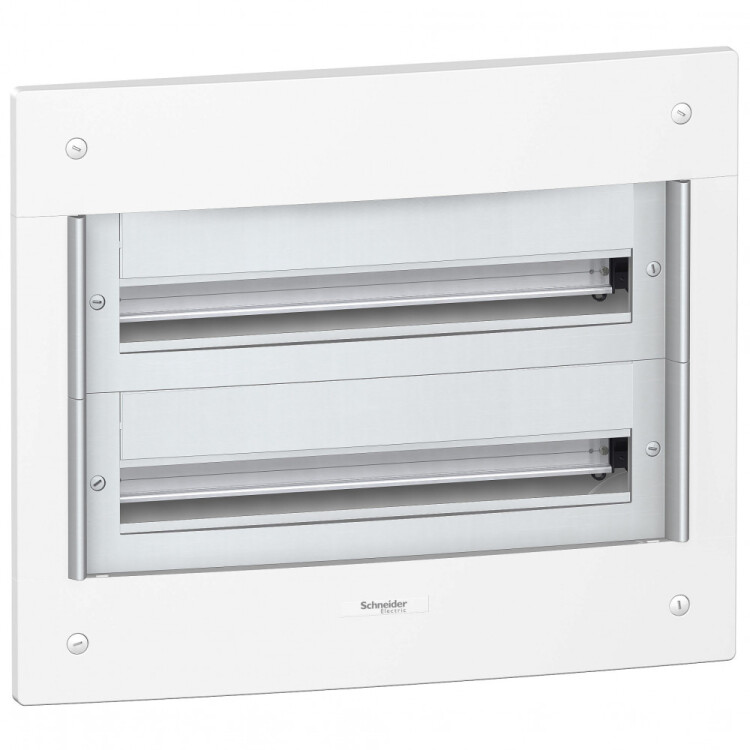 ЩИТ PRAGMA 2РЯДA ПО 24МОДУЛЕЙ ВСТРАИВАЕМЫЙ. В комплектацию щита входит: дверь прозрачная пластиковая, съемная рама с шагом между din-рейками 150 мм (может быть увеличено до 175 ммм), основание щита со съемными несимметричными пластронами, наборные самозажимные шины PE и N. Шины устанавливаются на держатель PRA90051 (поставляется в комплекте со щитом). Держатель может быть установлен как сверху, так и снизу щита.