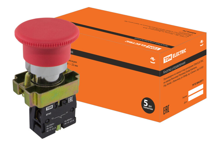 Кнопка BТ42 "Грибок" аварийная с фиксацией красная TDM